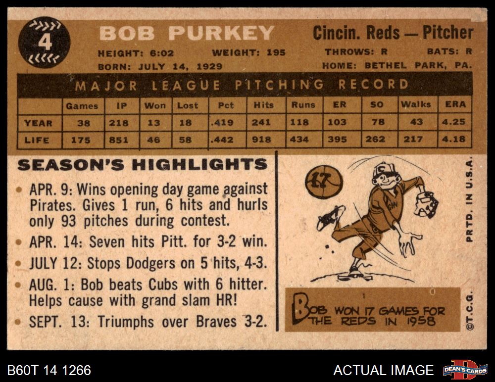 1960 Topps #4 Bob Purkey