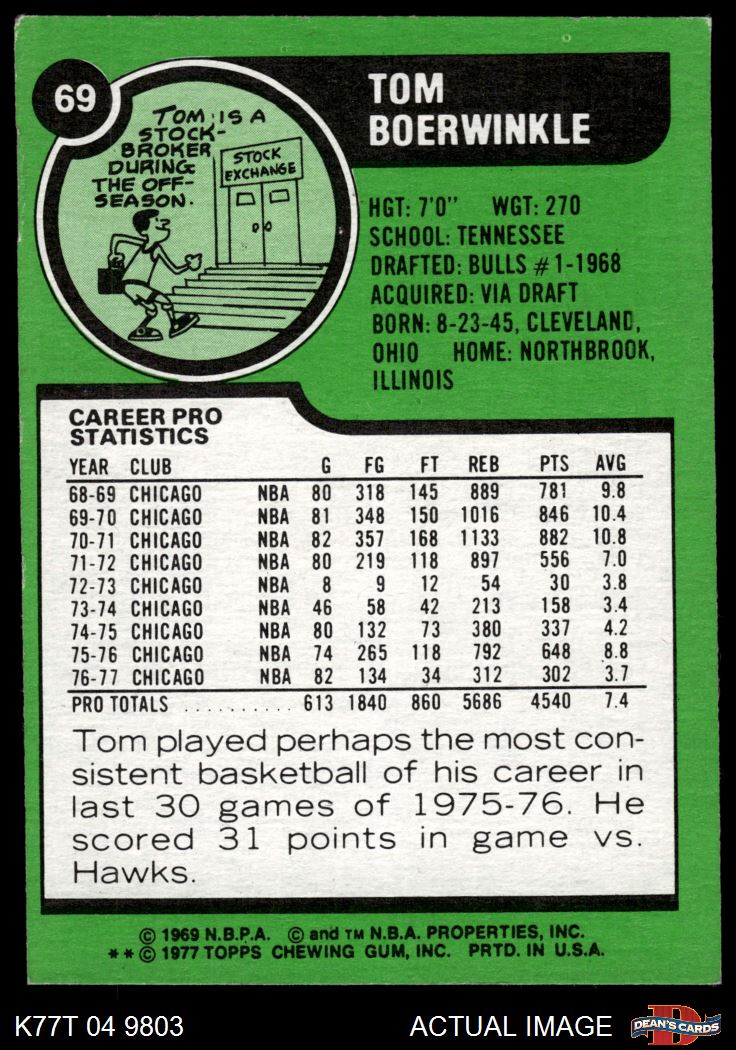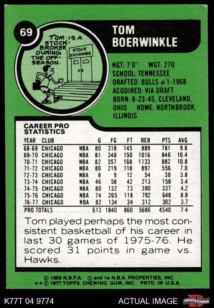 1977 Topps #69 Tom Boerwinkle 5 - EX