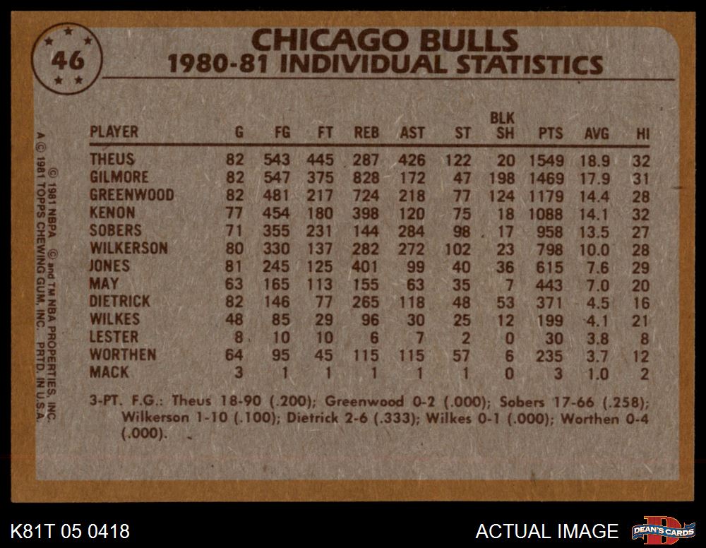 1981 Topps #46 - Reggie Theus / Artis Gilmore Bulls Leaders 5 - EX