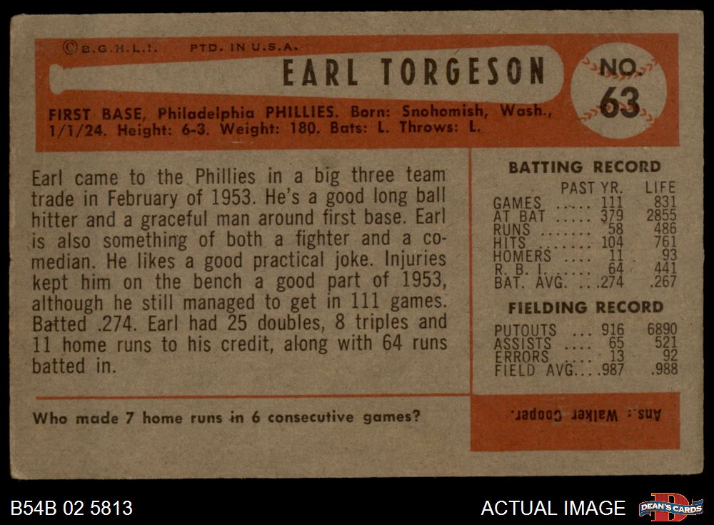 1954 Bowman #63 Earl Torgeson Front Thumbnail
