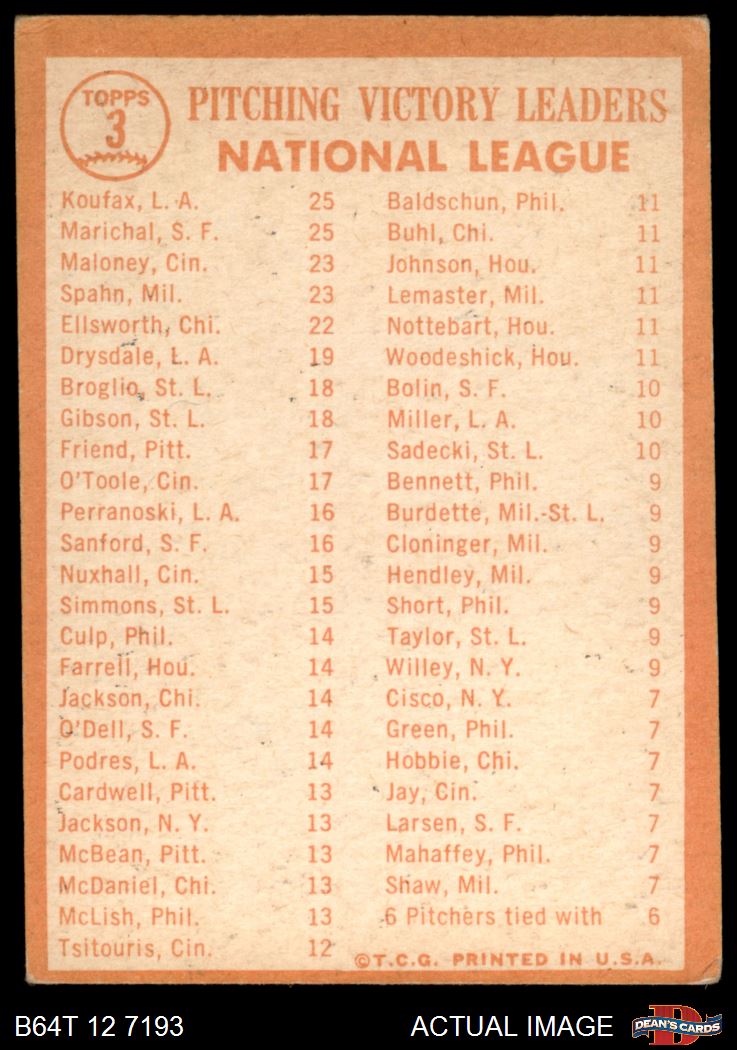 1964 Topps Baseball Cards (12,775 available)1964 Topps Dodgers / Giants / Braves / Reds (22 available)