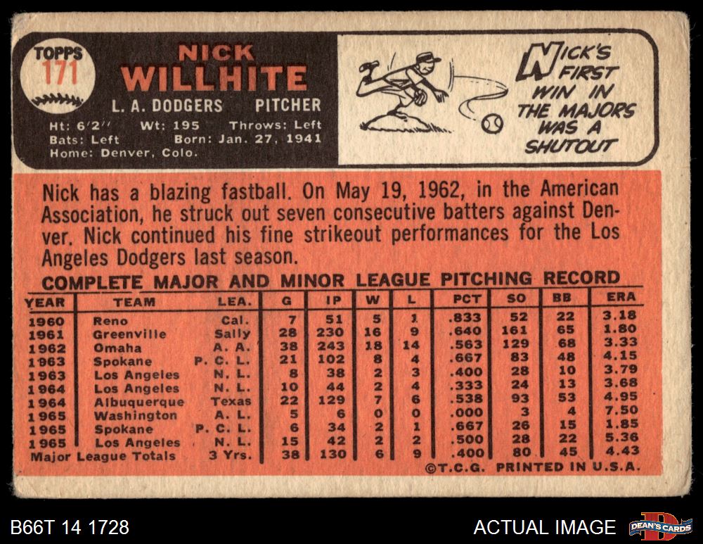 1966 Topps #171 Nick Willhite 1 - POOR