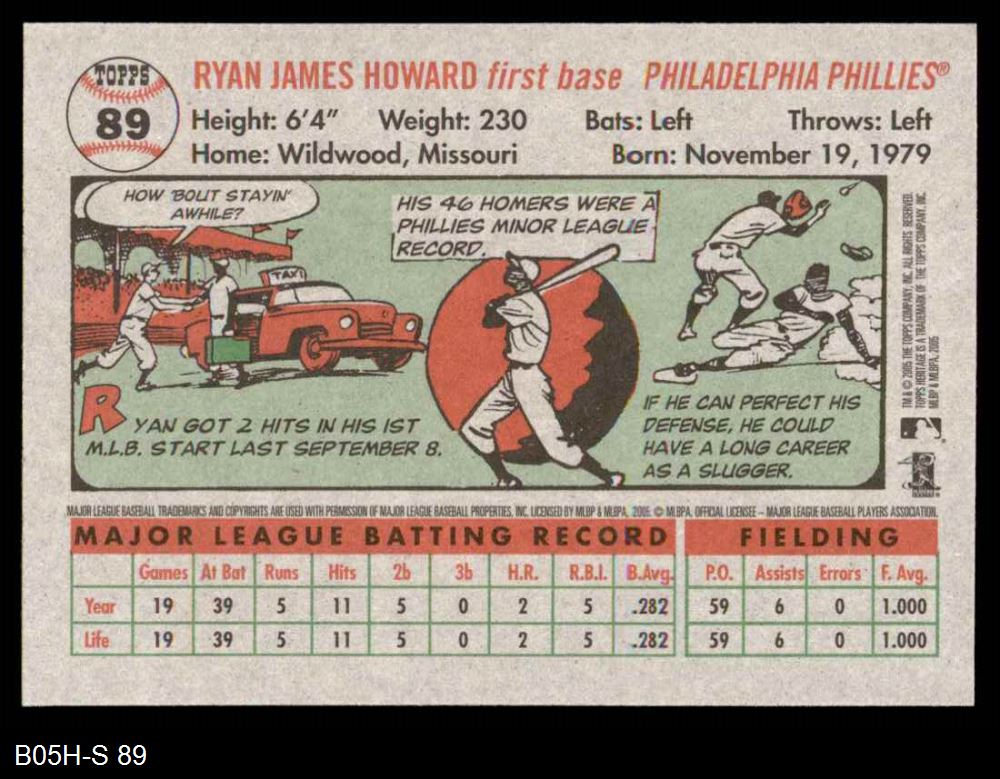 2005 Topps Heritage #89 Ryan Howard 8 - NM/MT