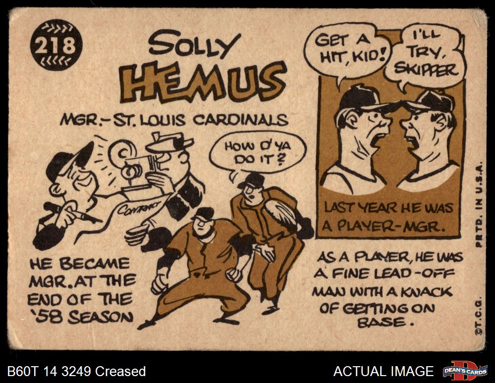 1960 Topps #218 Solly Hemus 2 - GOOD