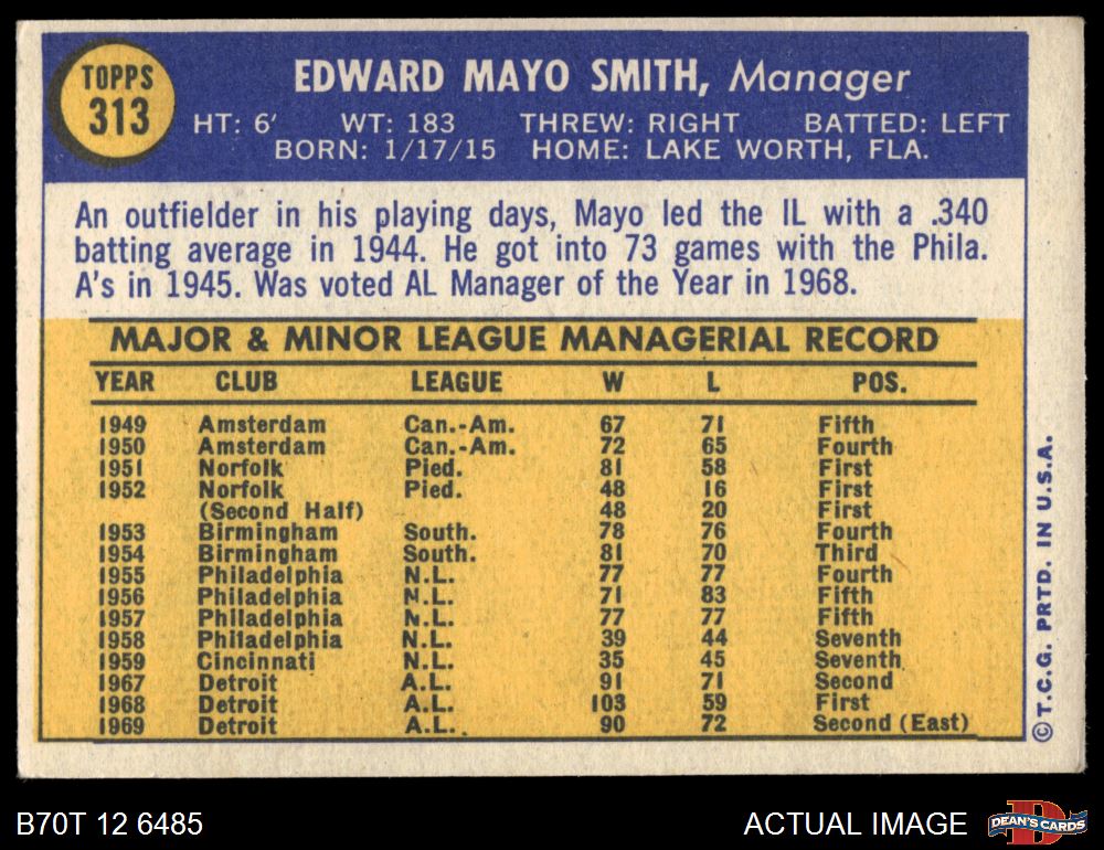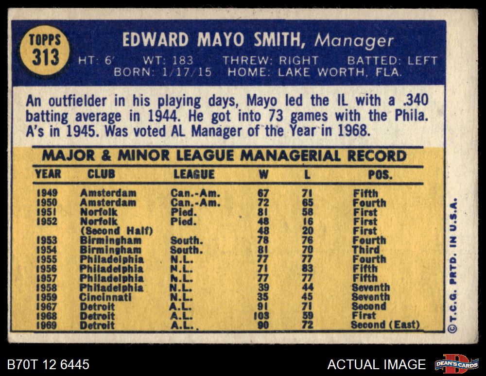 1970 Topps #313 Mayo Smith 4 - VG/EX
