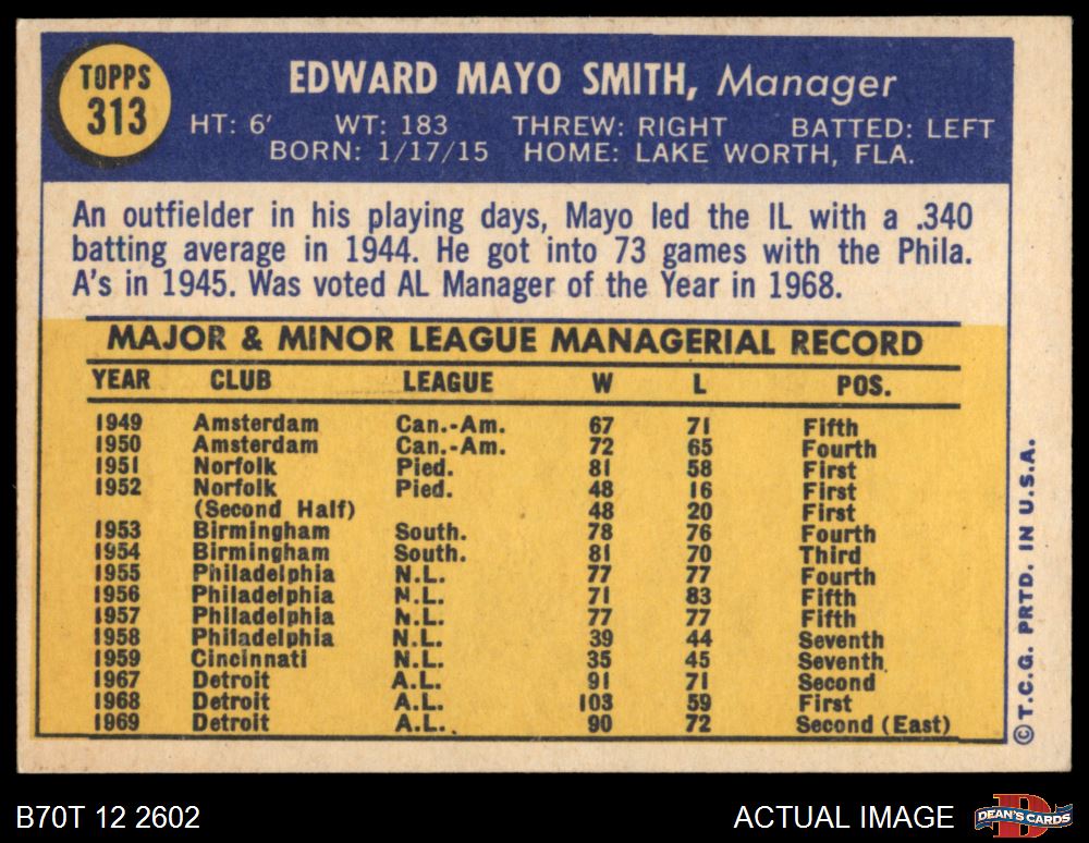 1970 Topps #313 Mayo Smith 7.5 - NM+