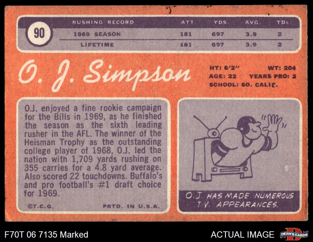 1970 Topps #90 O.J. Simpson 1 - POOR