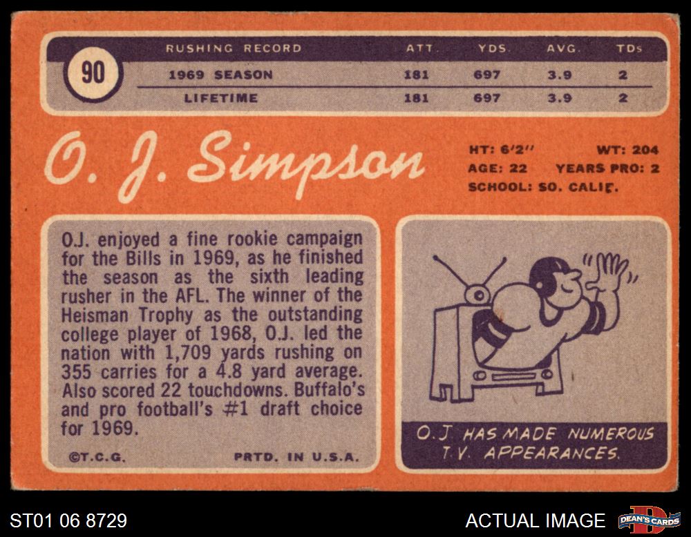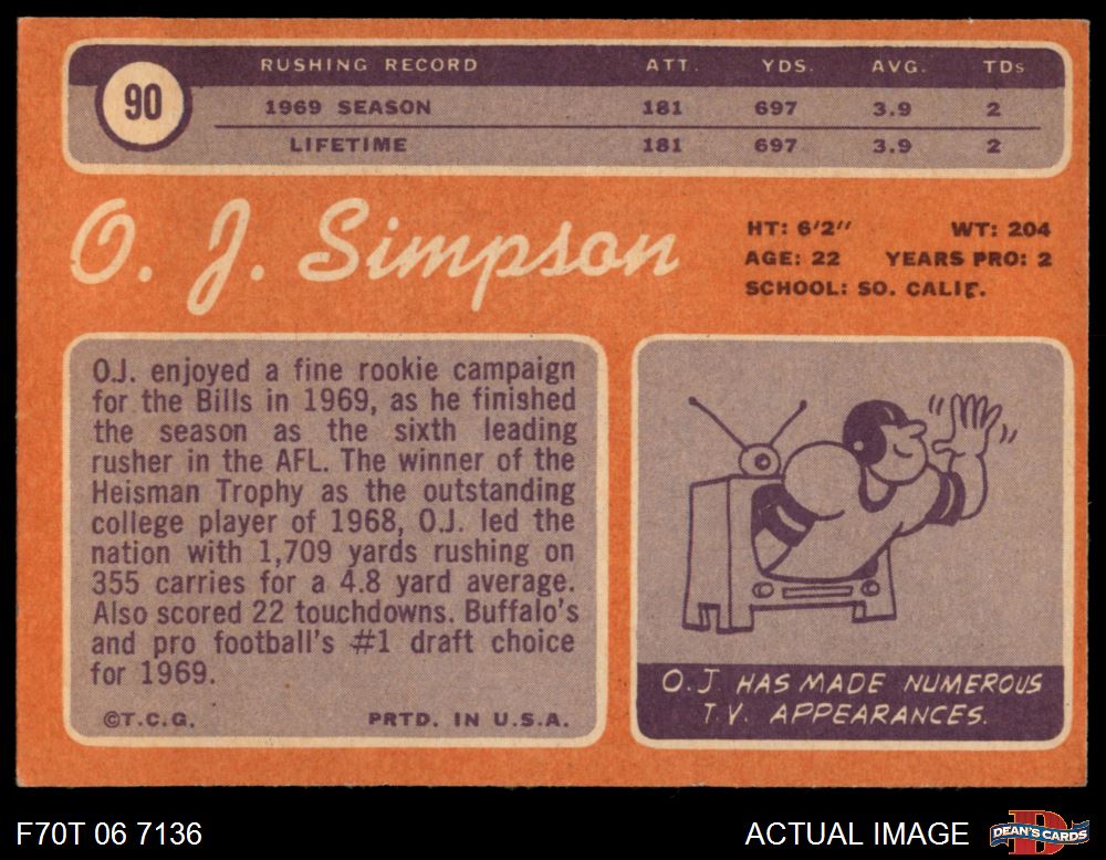 1970 Topps #90 O.J. Simpson 2 - GOOD