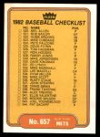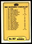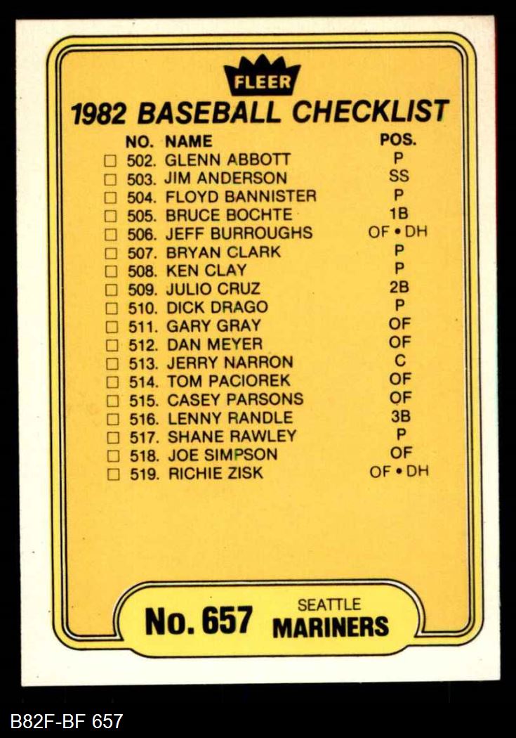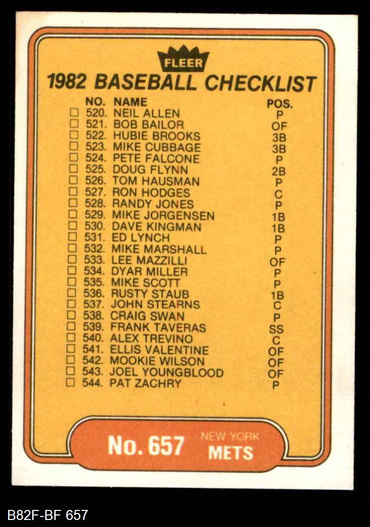 1982 Fleer #657 Mariners / Mets Checklist 8 - NM/MT
