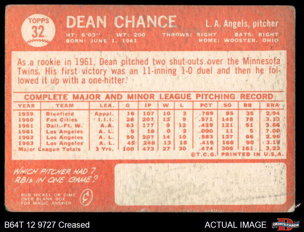 1964 Topps #32 Dean Chance 1 - POOR