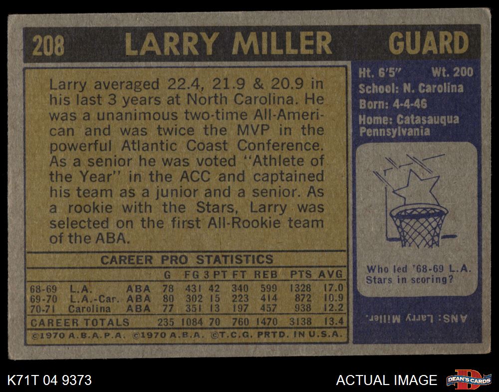 1971 Topps #208 Larry Miller 2 - GOOD