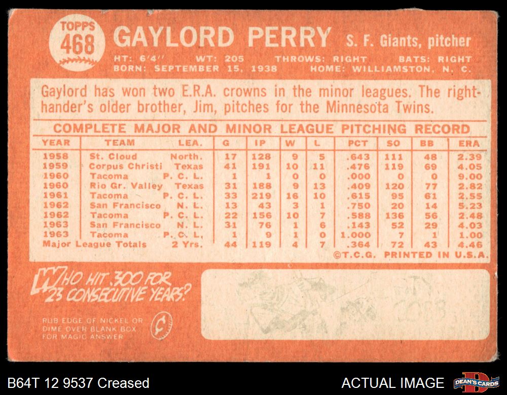 1964 Topps #468 Gaylord Perry 2 - GOOD
