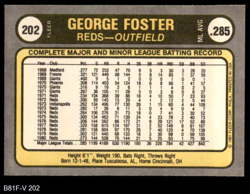 1981 Fleer #202 COR George Foster 8 - NM/MT