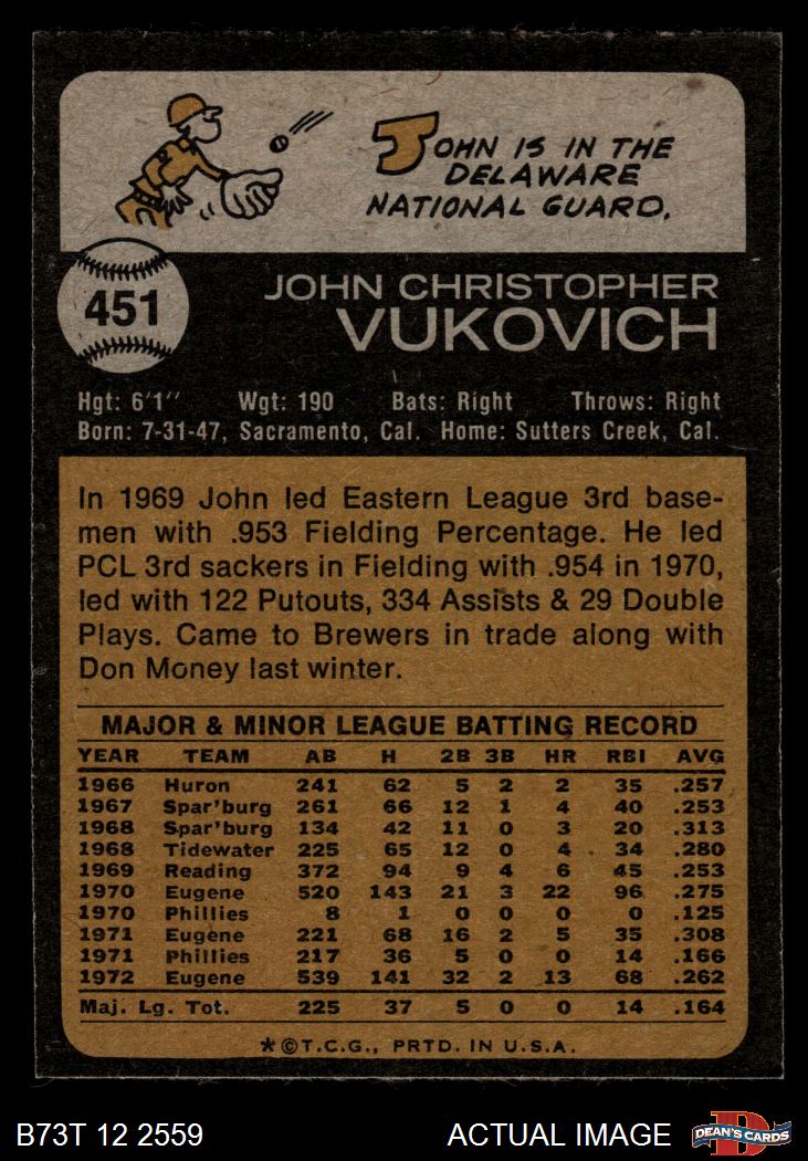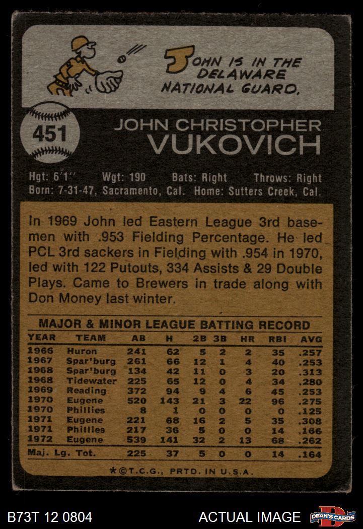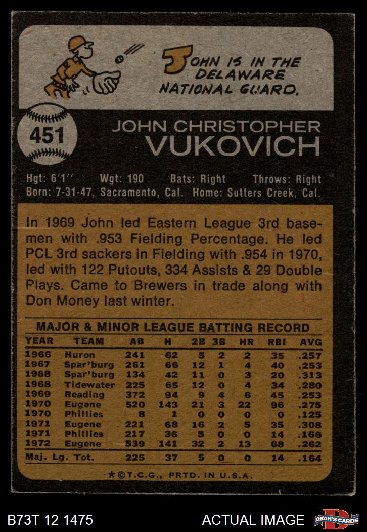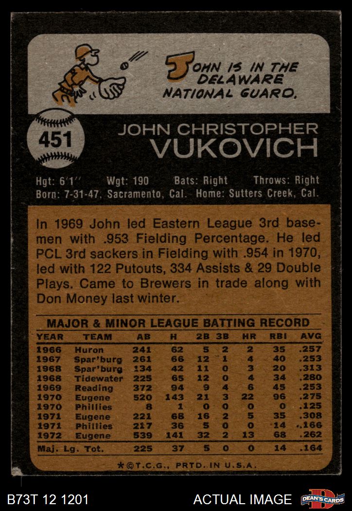 1973 Topps #451 John Vukovich