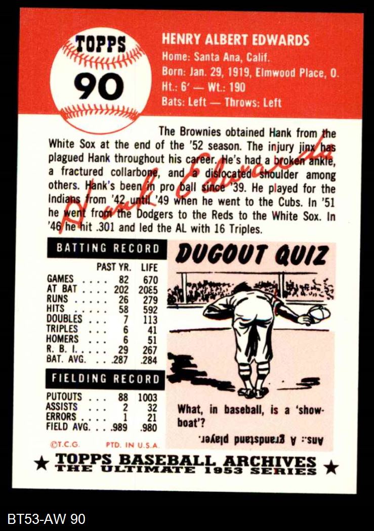 1953 Topps Archives / Reprint (1,398 available)1953 Topps Archives Browns (49 available)