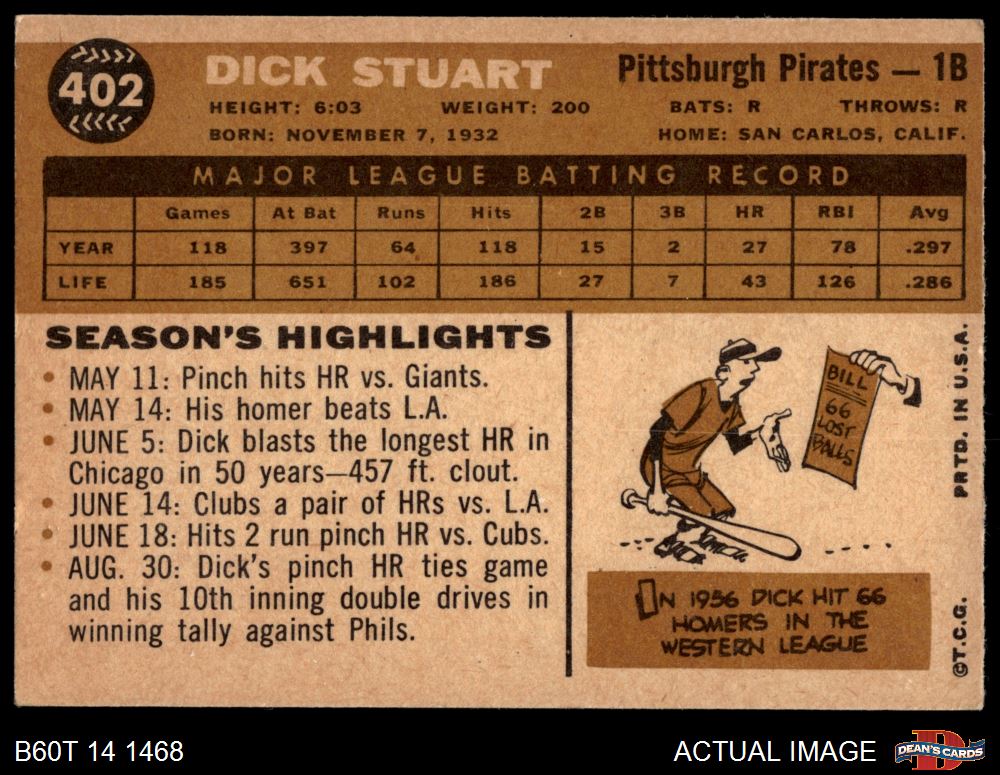 1960 Topps #402 Dick Stuart