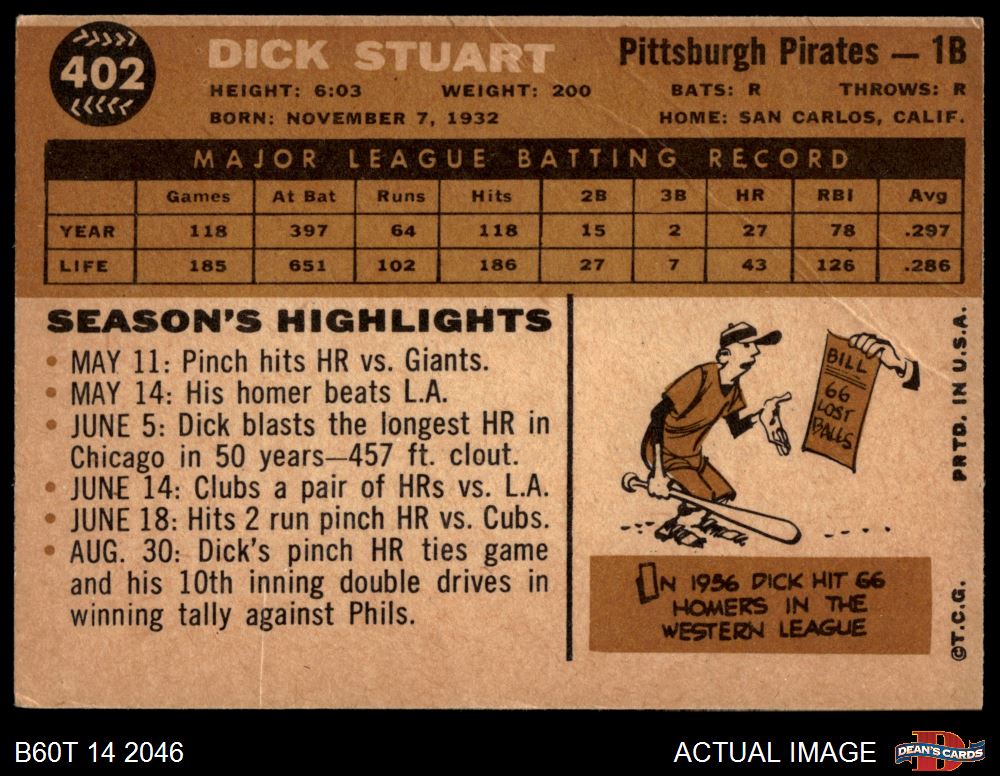 1960 Topps #402 Dick Stuart 4 - VG/EX