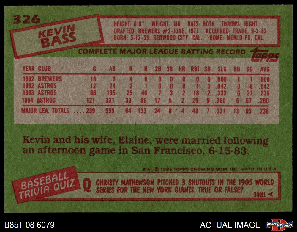 1985 Topps #326 Kevin Bass 8 - NM/MT