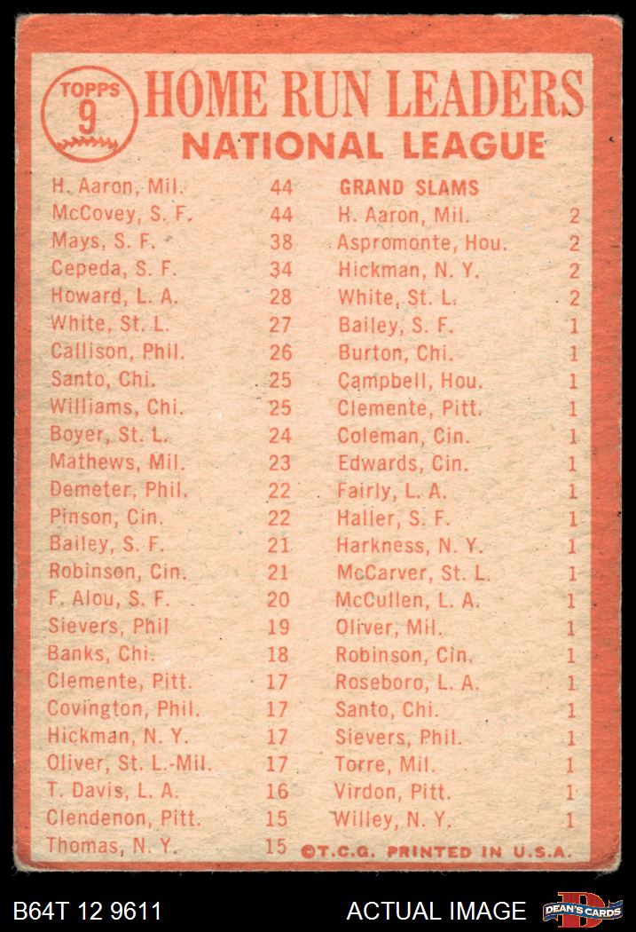 1964 Topps #9 NL HR Leaders