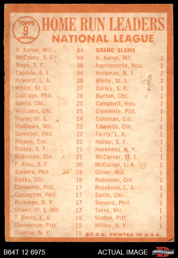 1964 Topps #9 NL HR Leaders