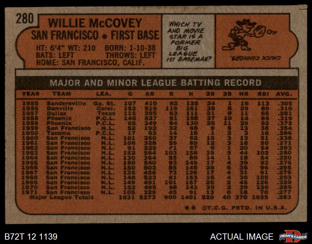 1972 Topps #280 Willie McCovey 1.5 - FAIR