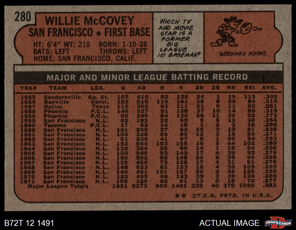 1972 Topps #280 Willie McCovey 6.5 - EX/MT+