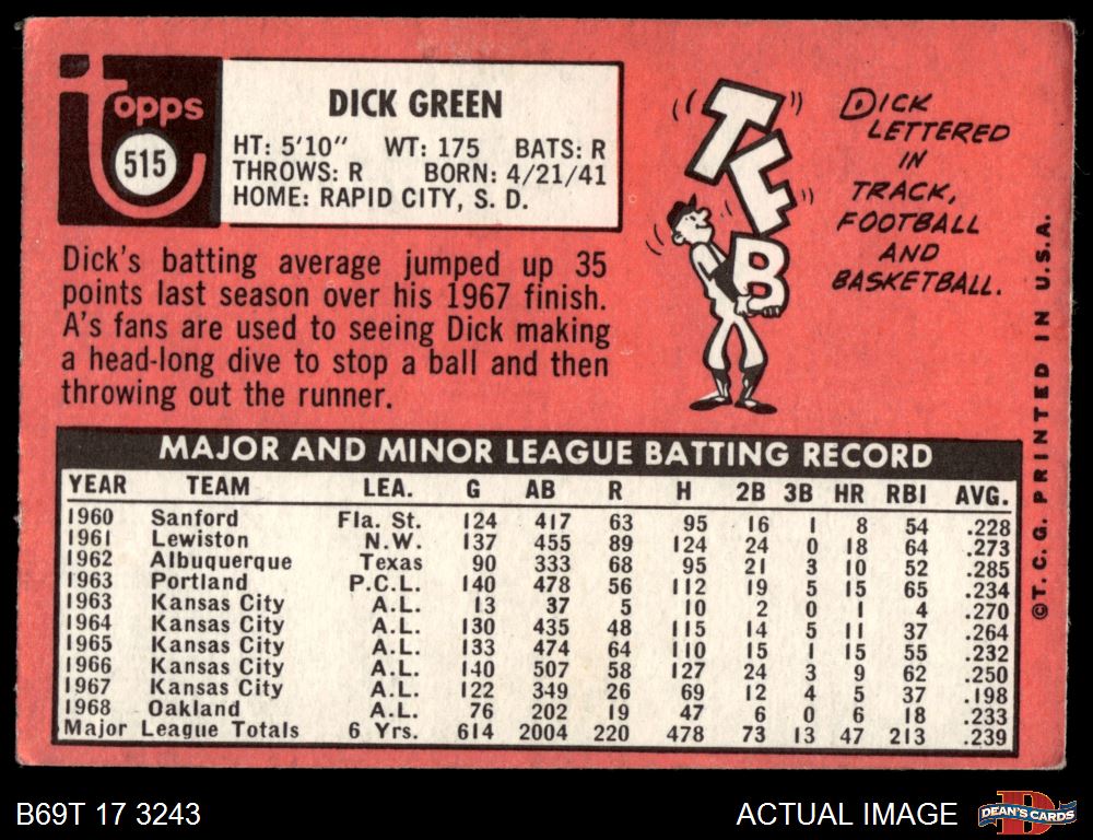 1969 Topps #515 Dick Green 2 - GOOD