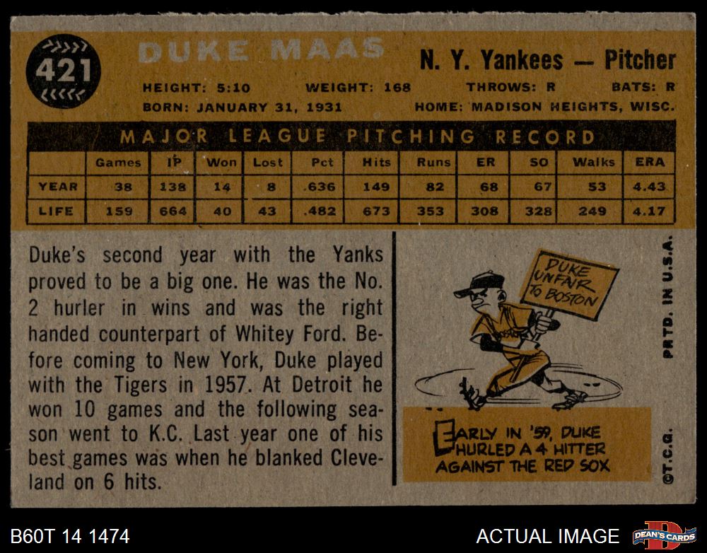 1960 Topps #421 Duke Maas 3.5 - VG+