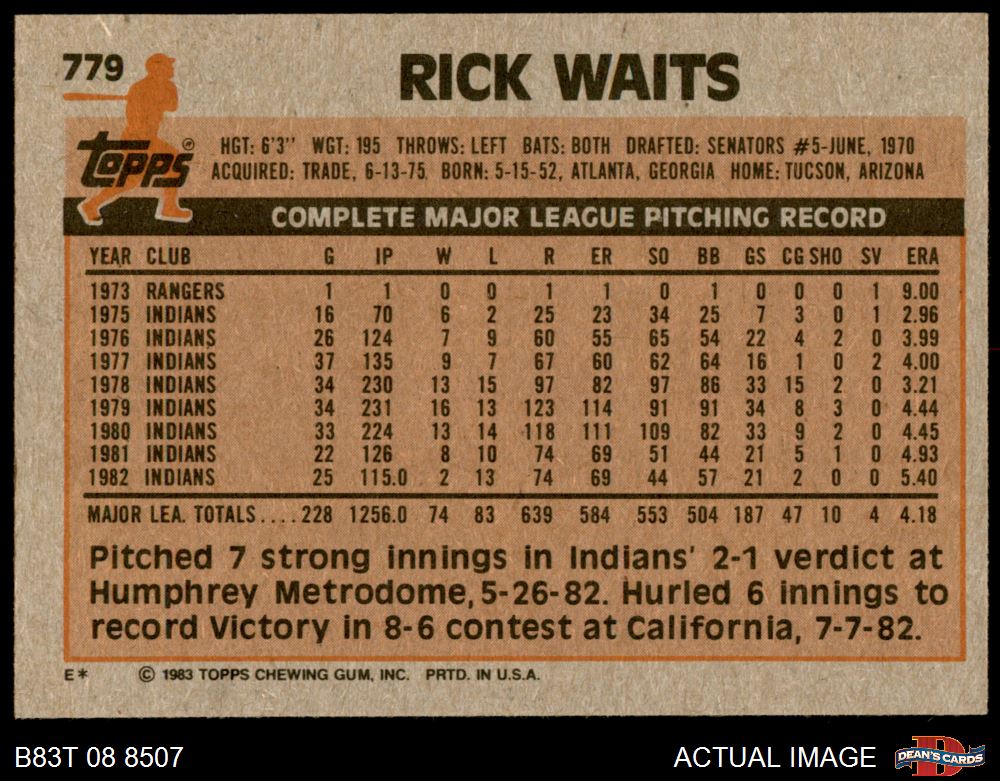 1983 Topps #779 Rick Waits
