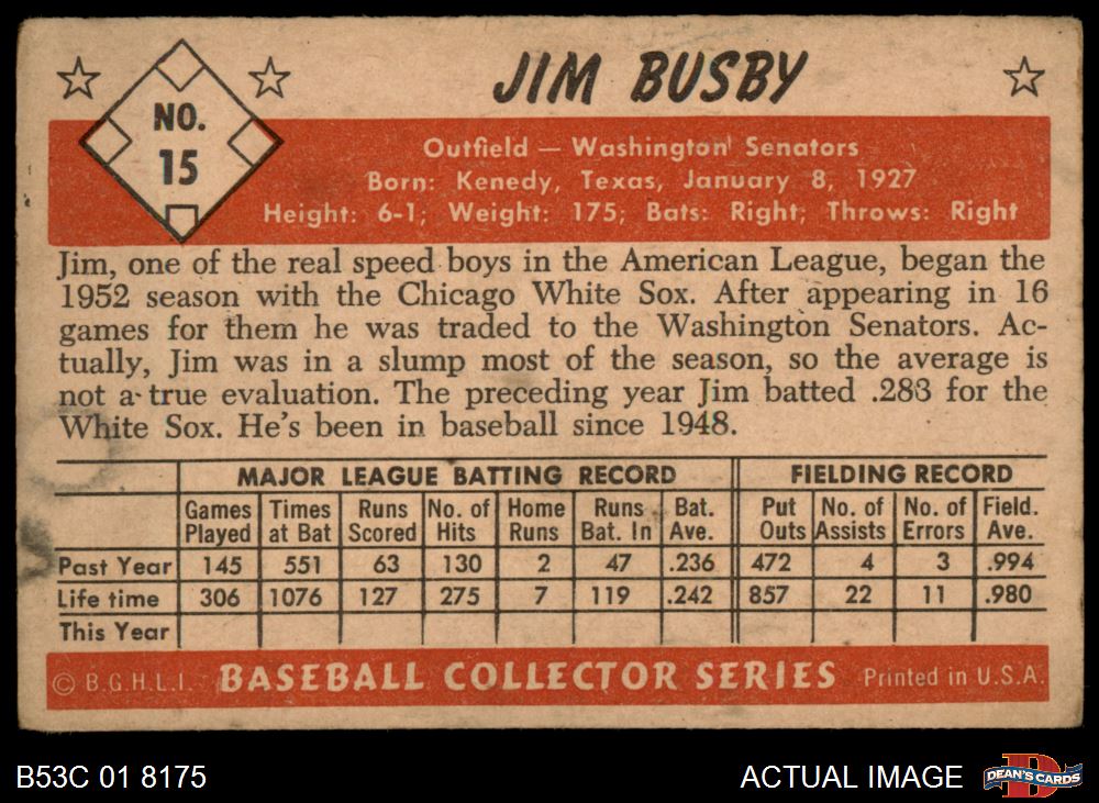 1953 Bowman #15 Jim Busby AUTHENTIC