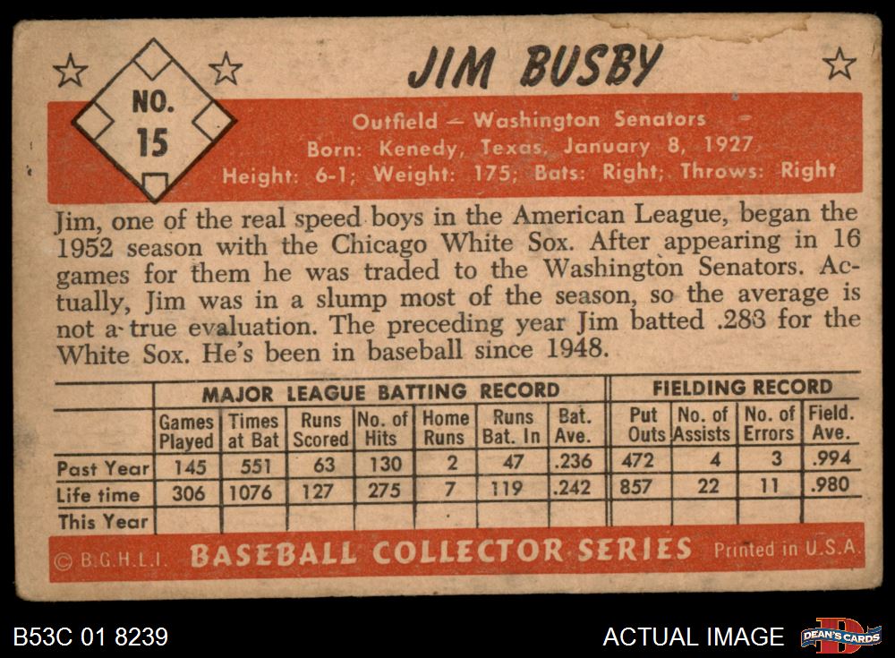 1953 Bowman #15 Jim Busby 1.5 - FAIR