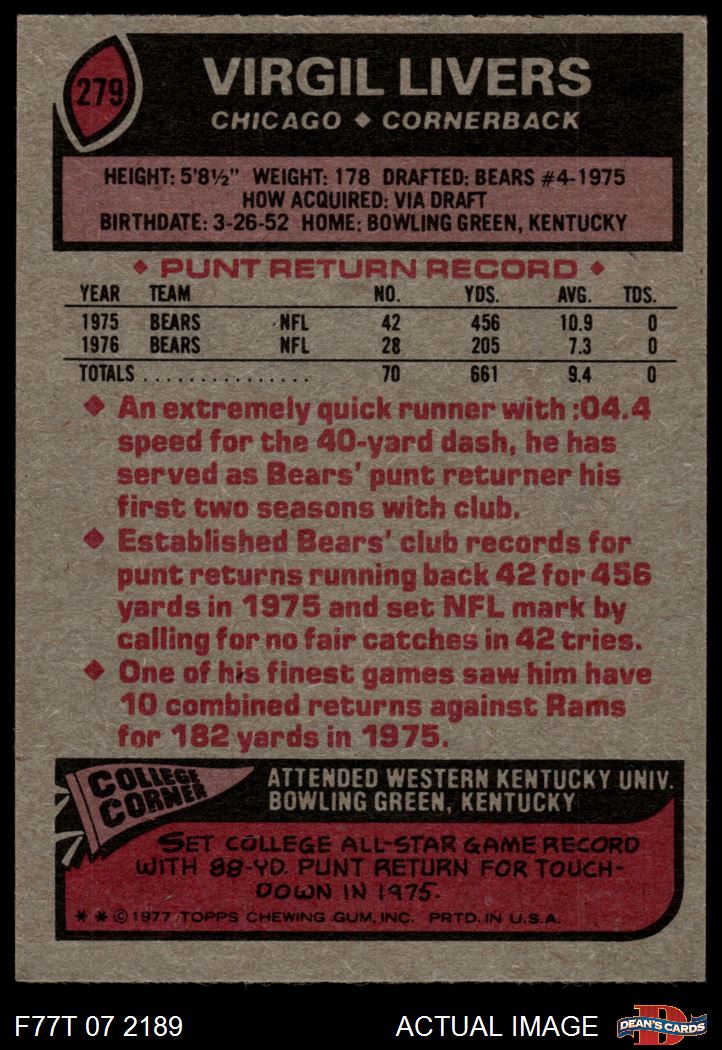 1977 Topps Football Cards (11,069 available)1977 Topps Bears (626 available)