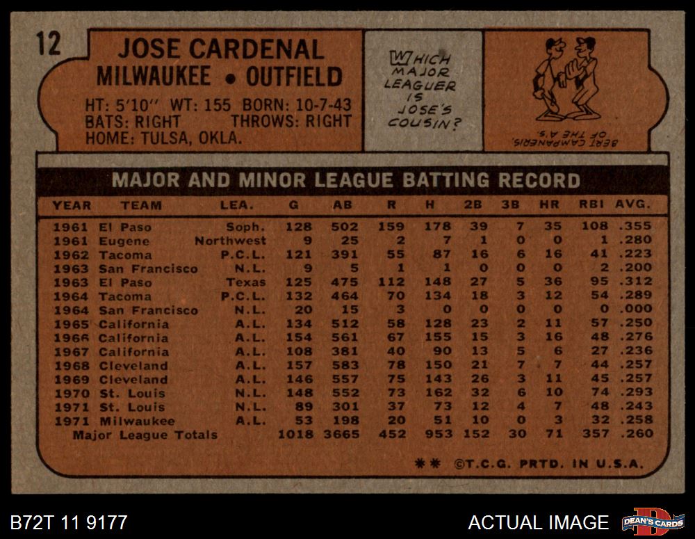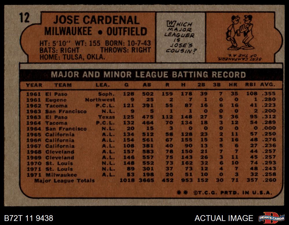 1972 Topps #12 Jose Cardenal 6 - EX/MT