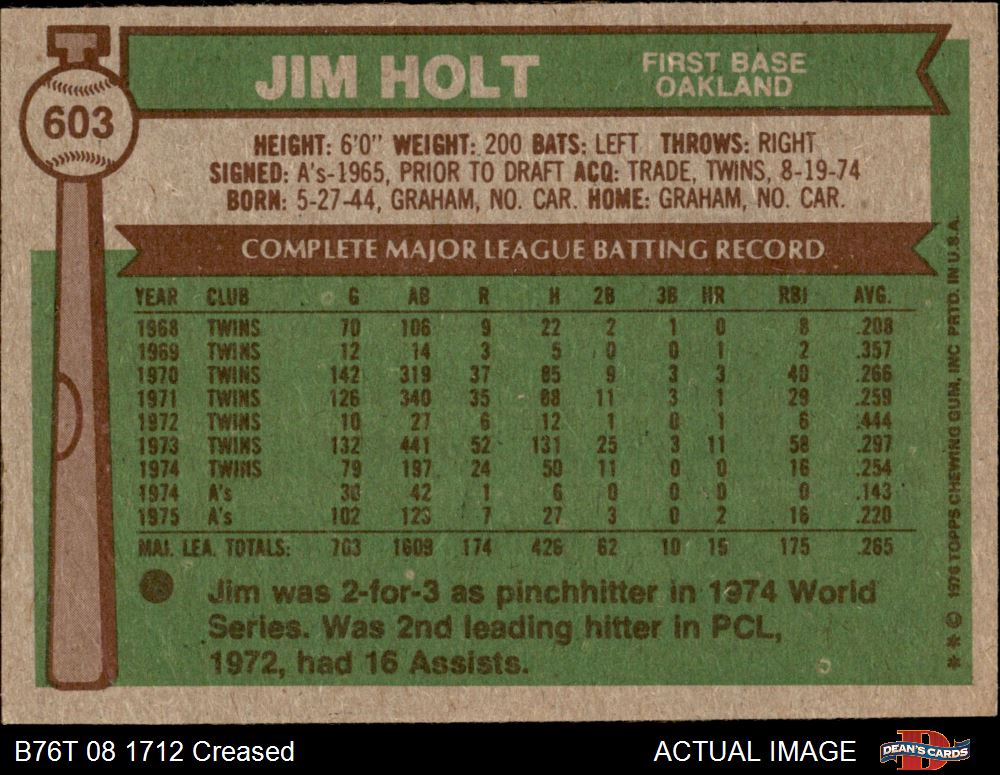 1976 Topps #603 Jim Holt