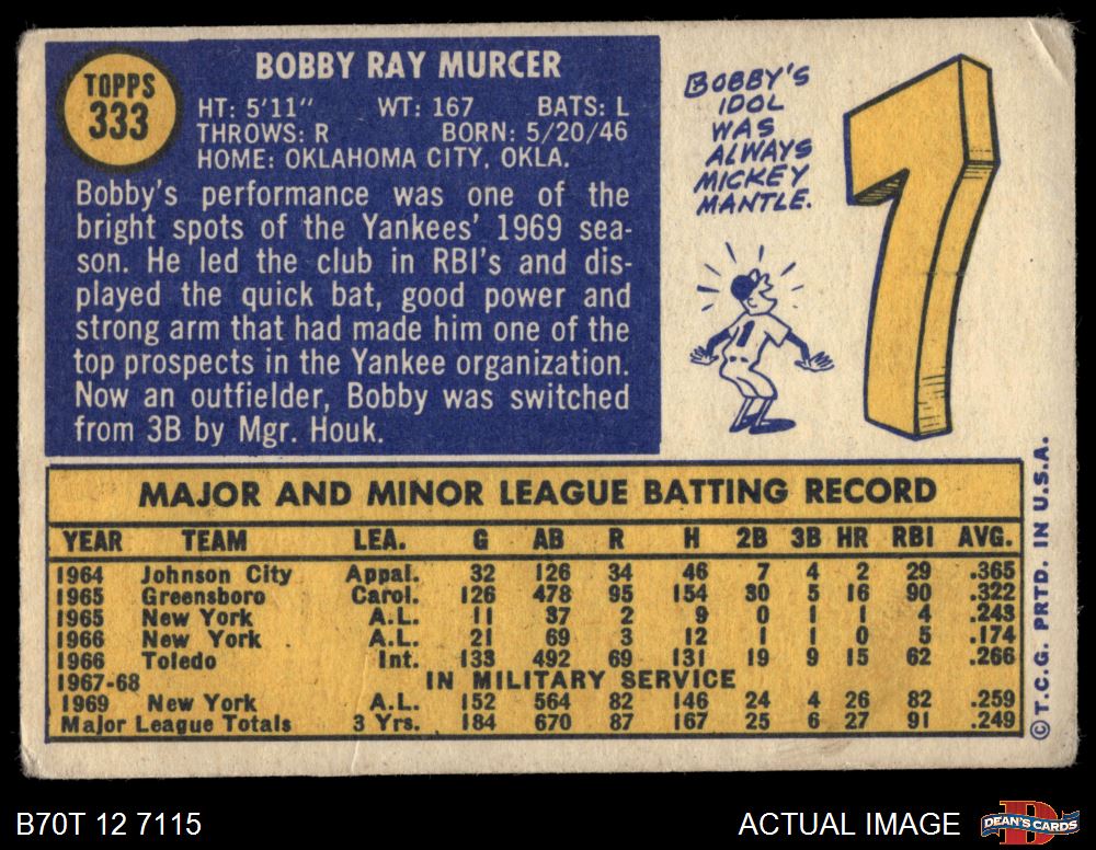 1970 Topps #333 Bobby Murcer 1.5 - FAIR