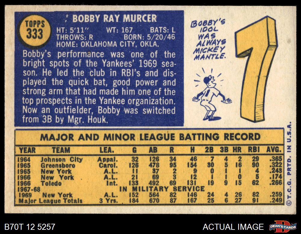 1970 Topps #333 Bobby Murcer