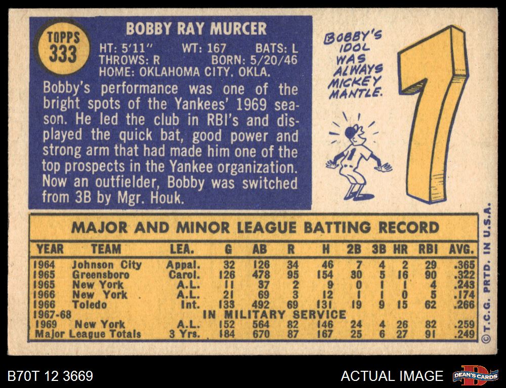 1970 Topps #333 Bobby Murcer 5 - EX