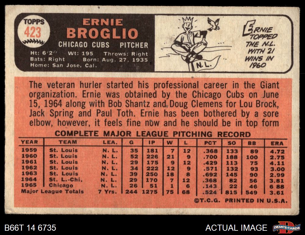 1966 Topps #423 Ernie Broglio 2 - GOOD