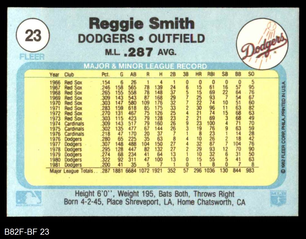 1982 Fleer #23 Reggie Smith 8 - NM/MT