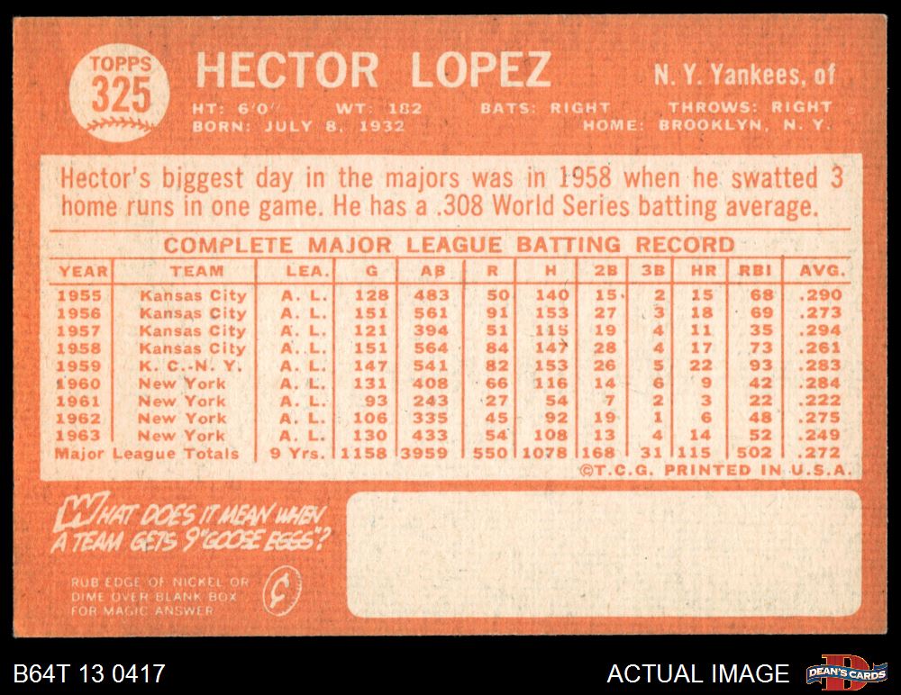 1964 Topps #325 Hector Lopez 4 - VG/EX