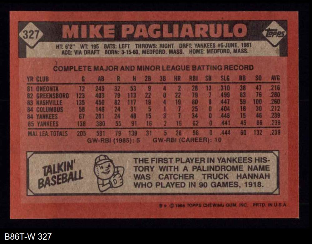 1986 Topps #327 Mike Pagliarulo 8 - NM/MT
