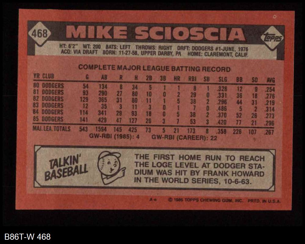 1986 Topps Baseball Cards (5,427 available)1986 Topps Dodgers (233 available)