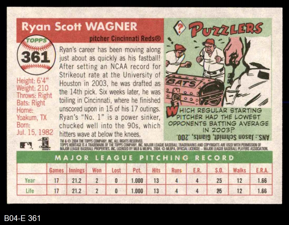 2004 Topps Heritage #361 NEW Ryan Wagner