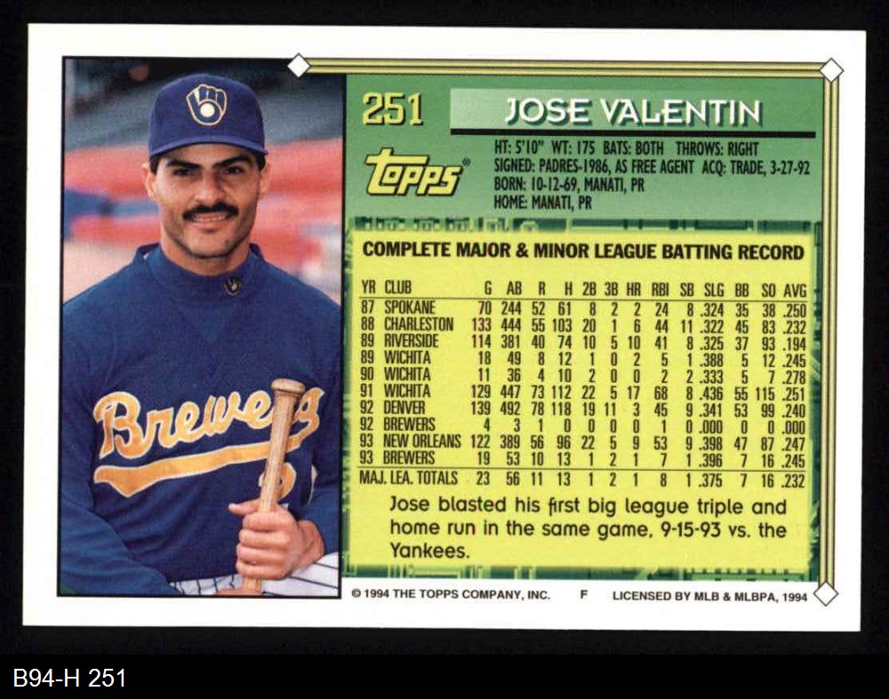 1994 Topps #251 Jose Valentin 8 - NM/MT