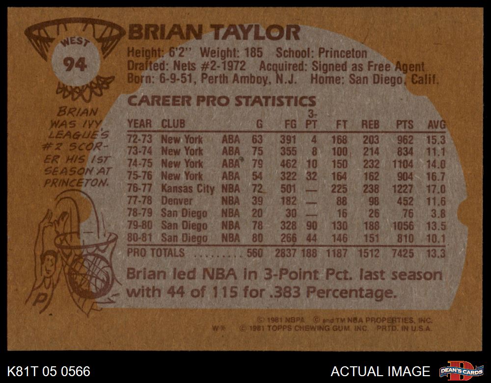 1981 Topps #94 W Brian Taylor