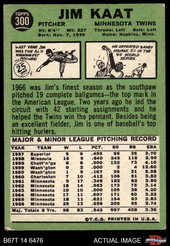 1967 Topps #300 Jim Kaat