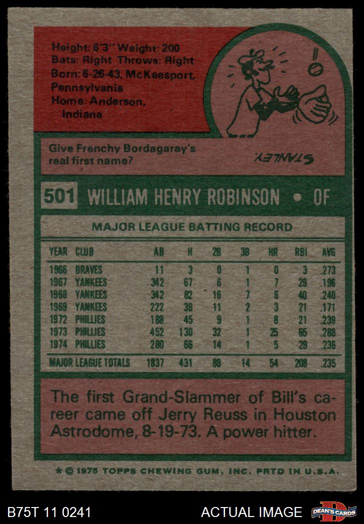 1975 Topps #501 Bill Robinson 4 - VG/EX