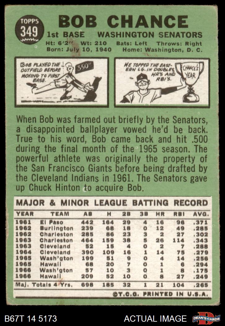 1967 Topps #349 Bob Chance 1 - POOR