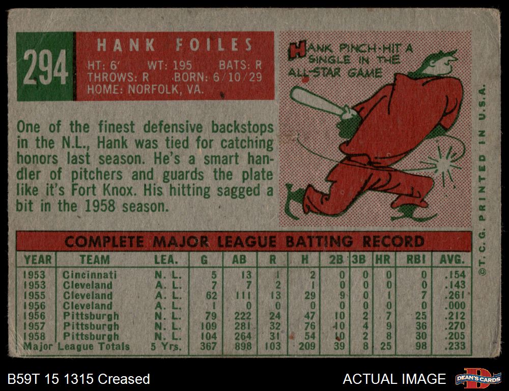 1959 Topps #294 Hank Foiles 1.5 - FAIR