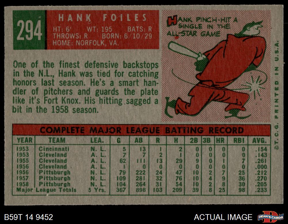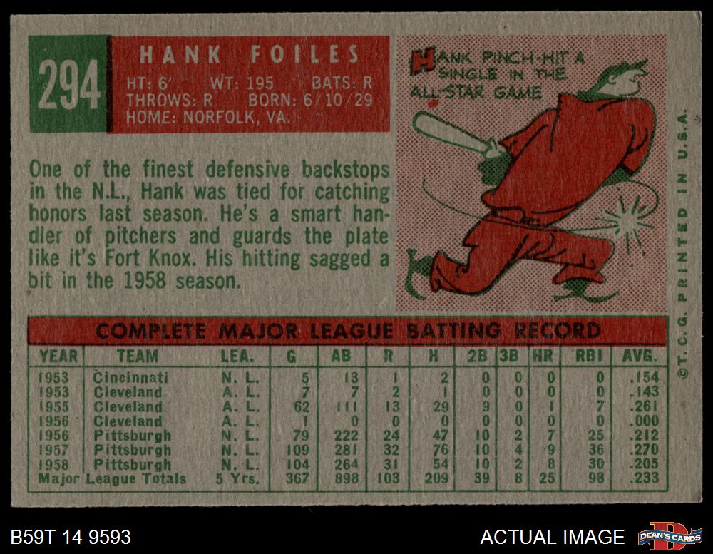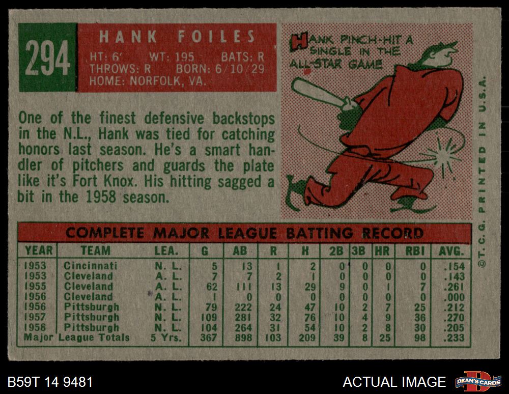 1959 Topps #294 Hank Foiles